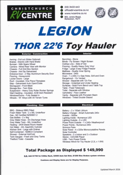 - Christchurch RV Centre is the only factory accredited Legion dealer in New Zealand.