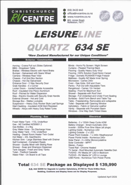 -All Leisureline caravans in stock have the SE (South Island exclusive package).